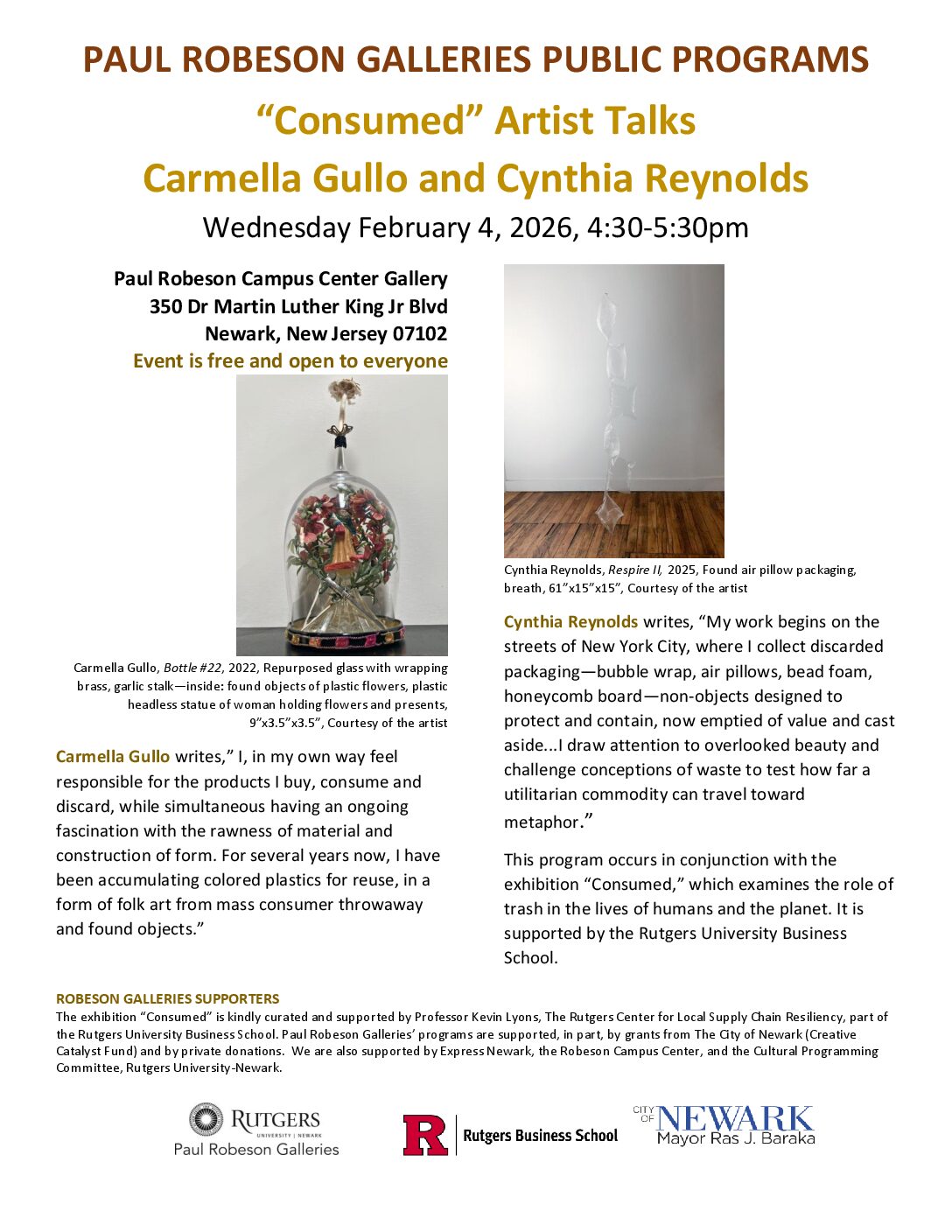 Time: Wednesday, 02/04/20264:30 pm - 5:30 pm / Paul Robeson Campus Center Gallery